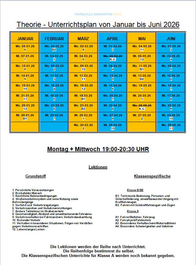 Nachfolgend der aktulle Theorieplan
